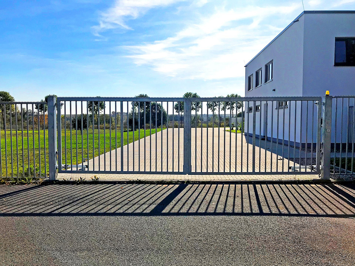 Das Drehflügeltore Industrie wird im Gegensatz zum Drehflügeltor Standard individuell und nach Kundenwunsch gefertigt. Es wird größtes Gewicht auf Stabilität, Wartungsfreiheit und Funktionssicherheit gelegt. Die Drehflügeltore und –türen können auf Wunsch auch mit Torantrieben, Sprechanlagen, elektrischen Türöffnern, Zackenleisten (Übersteigschutz) und Briefkästen ausgerüstet werden.